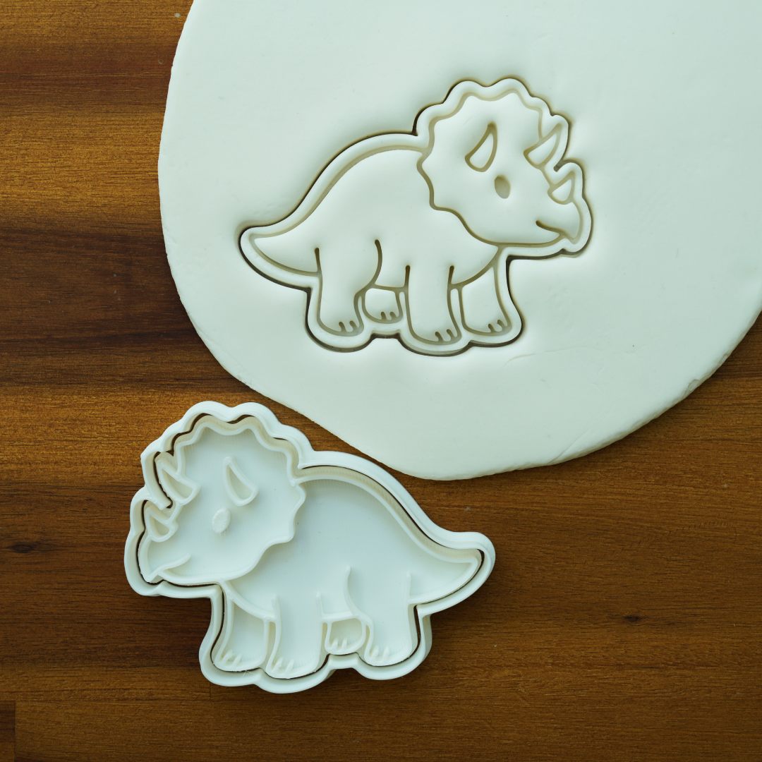 Odkryj prehistoryczne pieczenie z naszym wykrawaczem w kształcie Triceratopsa. Ten trójrogi olbrzym jest ulubionym motywem wśród dzieci i miłośników dinozaurów i doskonale uzupełni każdą kolekcję oryginalnych foremek na ciastka.