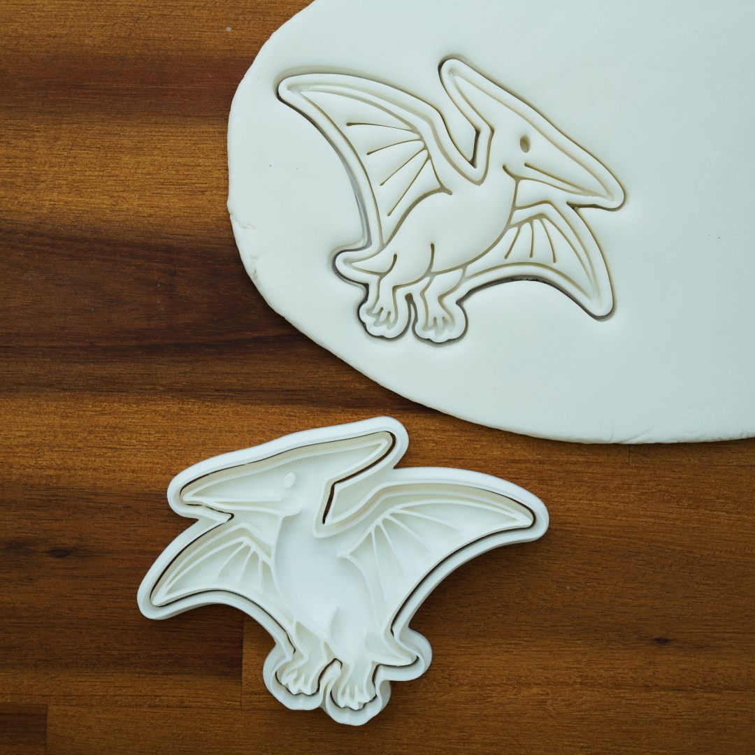 Wykrawacz Pteranodon jest wykonany z mocnego plastiku certyfikowanego do kontaktu z żywnością. Ostro zakończone krawędzie umożliwiają łatwe i precyzyjne wykrawanie, niezależnie od tego, czy z ciasta, fondantu, marcepanu czy kreatywnych mas, takich jak modelina czy modurit.